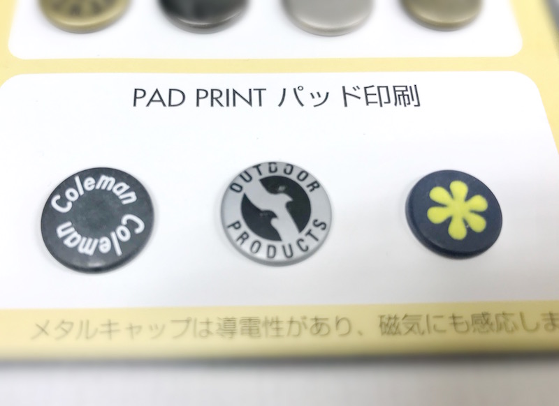 ロゴを入れることも可能です。金属でも人気の円筒状のキャップもあります。