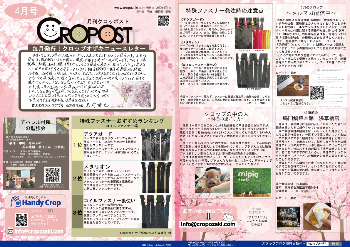 こんにちは!クロップオザキ毎月発行ニュースレター「CROPOST」編集長の野崎です。