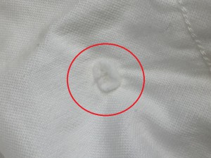 ボタンダウンのシャツの衿のところに付くボタンには必ず力布を入れて縫い付けましょう。
