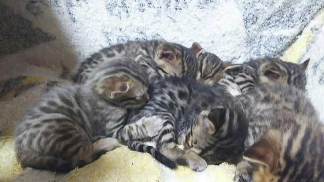 母の家で ベンガルの子猫が 6匹も誕生しちゃいました☆