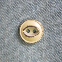 さて、今回紹介するのはボタンホールの部分が変わったボタンです。ボタンホールとはボタンを付けるための糸を通す穴のこと。2つ穴と4つ穴が一般的です。その他に裏足と言って、表面にボタンを付ける穴がなく裏側に足のようにでっぱった部分があり、糸で留めるタイプがあります。ブレザーの金属ボタンなどはこのタイプですね。今回は表穴(おもてあな)と言われるタイプのボタンのみ紹介します。