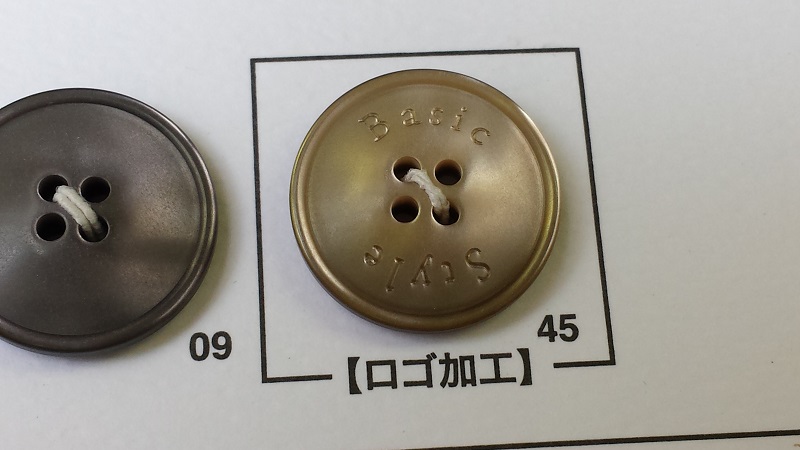 さて、今日のお話は、「別注のロゴ入りボタンを作ってみよう!」というお話です。Yシャツだとかポロシャツを買うとボタンにそのブランドロゴが刻印されたりしています。あれはレーザー彫刻と言って、ボタンができた後からレーザーで刻印しています。このレーザー彫刻を使うと意外に安価でロットも少なく、簡単に別注のロゴ入りボタンを作ることができます。それを紹介して行きます。