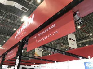 本題に入る前に、当社のブースを紹介させてください。私たちはJAPAN PAVILIONと言って日本企業が集まるの所に出展。馬鹿でかい会場に最小スペース(3m×3m)で出展!!でも、多くのお客様が来てくれましたよ〜♪