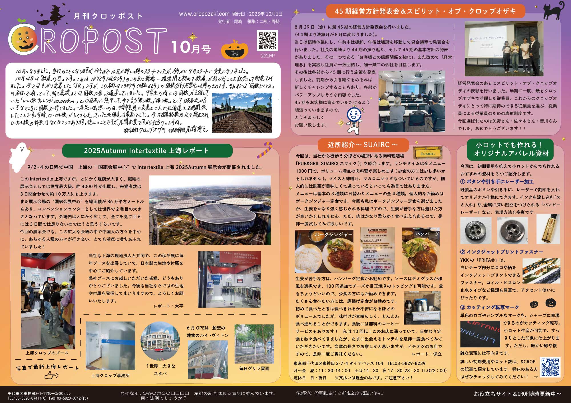 クロップオザキの毎月発行ニュースレター「CROPOST(クロッポスト)」編集部の二瓶です。