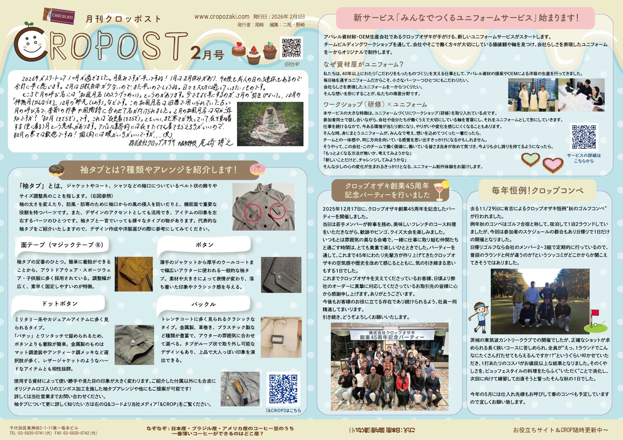 クロップオザキの毎月発行ニュースレター「CROPOST(クロッポスト)」編集部の二瓶です。